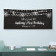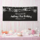 Add this personal touch to your child's First Birthday party. Welcome your guests with a personalized indoor banner. It has a blue textured background with a dreamy scene featuring string lights and snowflakes, Personalize by adding a name and a date. Check out our many other matching products in this collection to make your celebration complete and customizable.