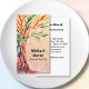 This Yoga Instructor business card is decorated with a rustic Tree of Life design which was made in mosaic using small fragments of brightly colored glass on a beige background.