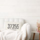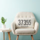 Pillow designed with light beige on both sides and you can customize to any color you wish. The front has customized zip code in grey distressed numbers and family's name on lower front side.