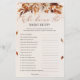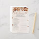 The design on the party game is attractive and very sturdy. It is made from heavy card stock. It is larger than it appears on line. Very happy with this product. The lettering on the this wedding game is large and clear. No need to wear glasses to read the questions.