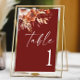 Rusty Burgundy Brown Floral Flower Wedding Table Number