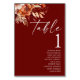 Rusty Burgundy Brown Floral Flower Wedding Table Number