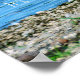 Rusty Can on the bank near Cerulean blue water on this colorful Poster with a message