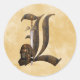 A gothic font "L" textured in rusty metal, and decorated with a rusty knights´helmet and a shiny, richly decorated fantasy sword. A wonderful gift for someone who loves medieval knights and lore. Maybe perfect for people who visit or take part in Renaissance Fairs.