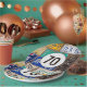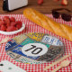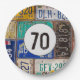 Old rusty license plate collection for 70th birthday party.