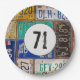 Old rusty license plate collection for 71st birthday party.