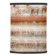 It was quick delivery, sooner than expected. This lampshade is exactly as described and the perfect size for my lamp. I replaced the old bell shape lampshade with this barrel shape and it allows me to place my lamp closer to the wall. I love the soft colors of this lamp shade and the modern-southwest design. In the evening, the light is a cream color. I am very happy with this lampshade and highly recommend this product. (Pardon the quality of my photos for this review.)
