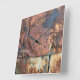 This is a close-up section of a rusty weathered industrial building / storage shed in the old part of the city of Gatineau (Hull) Quebec, and distressed style numbers with light edging to suit the theme. The metal siding has acquired some wondrous hues as it oxidizes and returns to its organic state over the change of seasons. The wrinkles and creases in the weathered rusted metal are becoming hard to distinguish from the man-made marks. It's a fascinating tableau of organic shapes and textures as creation and destruction dance in eternal rhythm and nature takes her course, leaving us with ever-changing visuals and patterns, colors of earthy red, orange, deep blues, purple tones, aqua and pale creamy shades, flaking and peeling, sagging and buckling. This small section of the siding on the old industrial outbuilding is a random detail enlarged, giving us a special glimpse into Mother Nature's creative process.