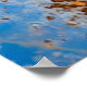 Rusty metal texture, blue scratchy backdrop. poster