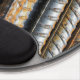 The plastic backing is nice and sturdy. The grippy pads underneath keep the mouse pad where I put it on my table. The pad the mouse sits on is cut well to fit the backing. The wrist pad is perfectly soft, supportive, and thick. I'm left-handed, and this mouse pad works just as well for me as it does for my right-handed friends. I'm the designer of HippieClecticHope products. I'm blown away by how well my intricate fractals turn out on the tangible items in the Zazzle Marketplace. This particular mouse pad ***appears*** like a 3D object... A mathematically-engineered rainbow black opal, inlaid under transparent fabric...