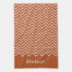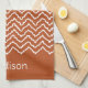 Rusty Red Terracotta Squiggly Chevron With Name Kitchen Towel