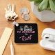 The key chain is made of metal and really sturdy. The flower design is really cheerful. The logo and colors are clear and crisp!