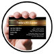 RV trailer business cards with simple but upscale look that includes a gold colored company name emblem, black background color you can customize and text you can change to suit your business. Best business cards for a mobile home sales, RV sales parts or service.
