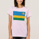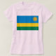 The front of this t-shirt boldly displays the Rwandan flag with its distinctive yellow sun over a blue band with smaller yellow and green bands below. This is matched at the back by an attractive map of Rwanda.