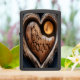A wooden heart carved into a tree trunk, featuring a wolf howling at the moon, the name Ryan inscribed, and a circular moon glowing brightly in the background.