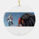 Lightweight, smooth, pure white ornament with nice sheen. Perfect size to be seen from across the room ... and to attract closer inspection! Price was great for ordering enough for the whole family! Clear, bold black design just as requested. Matches the order exactly. Just so nice!