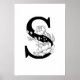 S botanical monogram. Letter initial with peonies Poster