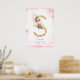 S Letter Monogram Gold Leaves Pink Magnolia Floral Poster