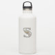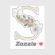 Letter S monogram floral. Letter S in golden brown texture accented with green watercolor compound leaves, flower blossoms and gold dust.