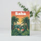 Escape to the hidden gem of the Caribbean with this vintage-style postcard. The artwork features the lush, mountainous landscape of Saba, highlighting its colorful gingerbread-style houses and dense tropical foliage against a vibrant sunset. The retro design captures the island’s unique charm and is perfect for a souvenir, a note to a friend, or a beautiful piece of art for your home.