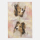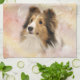 Beautiful sable Sheltie or Shetland Sheepdog face on a pastel painting light background dog lovers kitchen towel