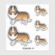 Destei's original cartoon illustration of a cute sable Shetland Sheepdog / Sheltie breed dog. The design is placed five times on the sheet in two different sizes. There are two larger ones and three smaller ones.