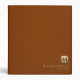 Modern recipe binder features a minimal luxury design with a brushed gold monogram on a sable suede print background. Custom family name presented in the lower right-hand corner in stylish simple font with a complimentary luxury monogram medallion.