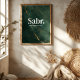 Elegant Islamic wall art featuring the word “Sabr” with the phrase “Beautiful patience” on a luxurious green marble and gold background. A powerful daily reminder of faith, strength, and inner peace.
