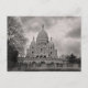 This postcard captures the Sacre Coeur Cathedral high on the the summit of the butte Montmartre, the highest point in the city. This black and white photo captures the beautiful Cathedral the surrounding trees and digitally enhanced clouds with a tough of oil painting effect.