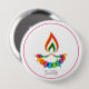 A radiant flame unfurls in a spectrum of color, rising above a diya adorned with joyful dots—each hue a prayer, each spark a celebration.