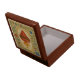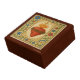 This exquisite wooden keepsake box features a radiant image of the Sacred Heart of Jesus in the style of an illuminated manuscript. Surrounded by vibrant floral detailing and rich liturgical scrollwork, the crowned and flaming Heart—encircled by a crown of thorns—invites devotion and trust in Christ’s Divine Love. A reverent vessel for rosaries, jewelry, or small heirlooms, this box is perfect for Catholic gifting and home altars.