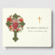 Our lovely traditional Catholic vintage image of the Sacred Heart of Jesus overlaid on a cross with red poinsettias funeral guest book will add a comforting touch to your funeral service or for many other occasions. Click the customize button if you would like to change the text, fonts, colors, size and/or position of the images and text.