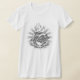 V-neck women's t-shirt with tattoo design. Hand drawn Sacred Heart with roses, flame and radiating light. Inscription below reads "Cineri Gloria Sera Venit" (Glory comes to the dead too late).