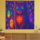 This design features a dark colorful trippy kitty with glowing runes and crystals.