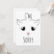 A drawing of a cat crying, that is sandwiched between the text, "I''m Sorry."