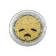 * Energetically Enhanced contemporary funny trendy modern popular cute sweet BUMMED SAD DISAPPOINTED EMOJI design with a faux sparkling Glitter diamond pave Background. The Emoji itself a faux yellow Gold Glitter.
