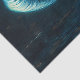 Tissue paper features painting of a despondent-looking jester sitting in a chair. The sad guy is wearing a blue and orange jester outfit, and his knees are pulled to his chest, head bowed. The artwork invokes grief, depression, melancholy; ironic art featuring a fool in despair. Dark, moody lighting accentuates the somber atmosphere.