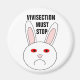 This design features the sad face of a white rabbit. This rabbit has a big frown on its face because it is a lab rabbit that has had cosmetics tested on it. The whites of its eyes are red and swollen. The design has been created to bring to attention the unnecessary suffering caused by the testing of cosmetics on animals. The black text between the ears of the rabbit syas, "vivisection must stop" If you agree then stick this little bunny on your fridge or dishwasher.
