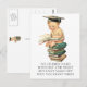 Cute, vintage illustration of a little baby scholar in glasses, wearing his graduation cap, sitting on a stack of books and reading. Please - write to him immediately! Art by Charles Twelvetrees