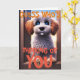 Sending a "thinking of you" card is one of the most thoughtful messages you can send. It can be rather unexpected and be a total surprise to someone needing a pick-me-up. This one includes a fun photo of you that you can customize. The design features a sad puppy looking out of a door into the distance.
