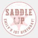 Add a western flair to your little cowgirl’s birthday with these Saddle Up pink sheriff badge stickers! Perfect for sealing favor bags, decorating party cups, or personalizing envelopes for a country-themed 1st birthday, rodeo, or pony party.