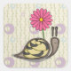 Sadie the paisley snail smiles as she scoots along in her striped shell under her favorite pink flowers.