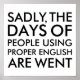 Sadly, The Days of People Using Proper English are Went. Funny Grammar Humor Saying / Quote / Slogan. Spelling Humor.