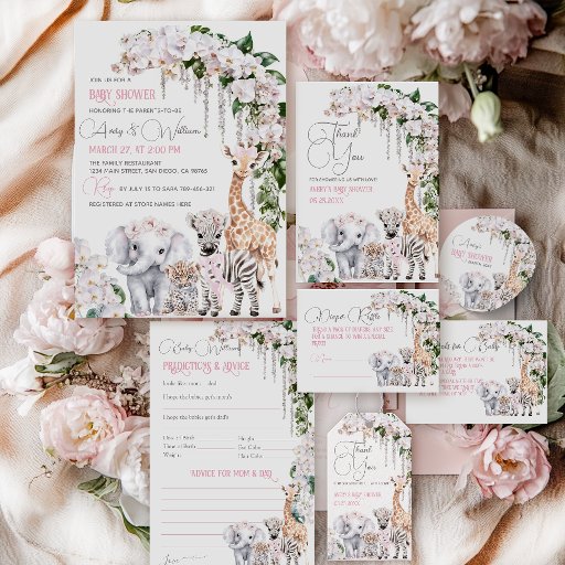 🐾 Safari Animals: Immerse yourself in the captivating world of the wild, as adorable Safari animals like lions, zebras, and flamingos grace your invitation. It's a safari adventure right at your fingertips!