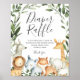 Give your guests a lovely direction with our safari animals diaper raffle sign, featuring watercolor greenery eucalyptus garland and elegant handwritten style font.