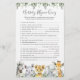 Safari animals themed baby shower nursery rhyme quiz game card features a watercolor safari animals illustration and watercolor greenery eucalyptus garland and elegant handwritten style font.
