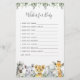 Safari animals themed baby shower wishes for baby game card features a watercolor safari animals illustration and watercolor greenery eucalyptus garland and elegant handwritten style font.
