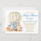 Safari Animals Balloon Blue Bow Shower by Mail Invitation