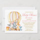 Safari Animals Balloon Pink Bow Shower by Mail Invitation