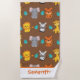 A fun and cute beach towel, this design features cute lions, giraffes, tigers, elephants, and zebras. A true safari adventure, customize your name at the bottom. Great for a child, order your beach towel today!